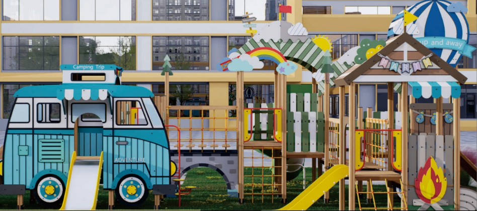 Retro RV Role-Play Playhouse: Featuring realistic RV-style doors, windows, and interior cabin space, this structure facilitates imaginative "playing house" scenarios while fostering children's verbal expression, social imagination, and logical thinking skills.